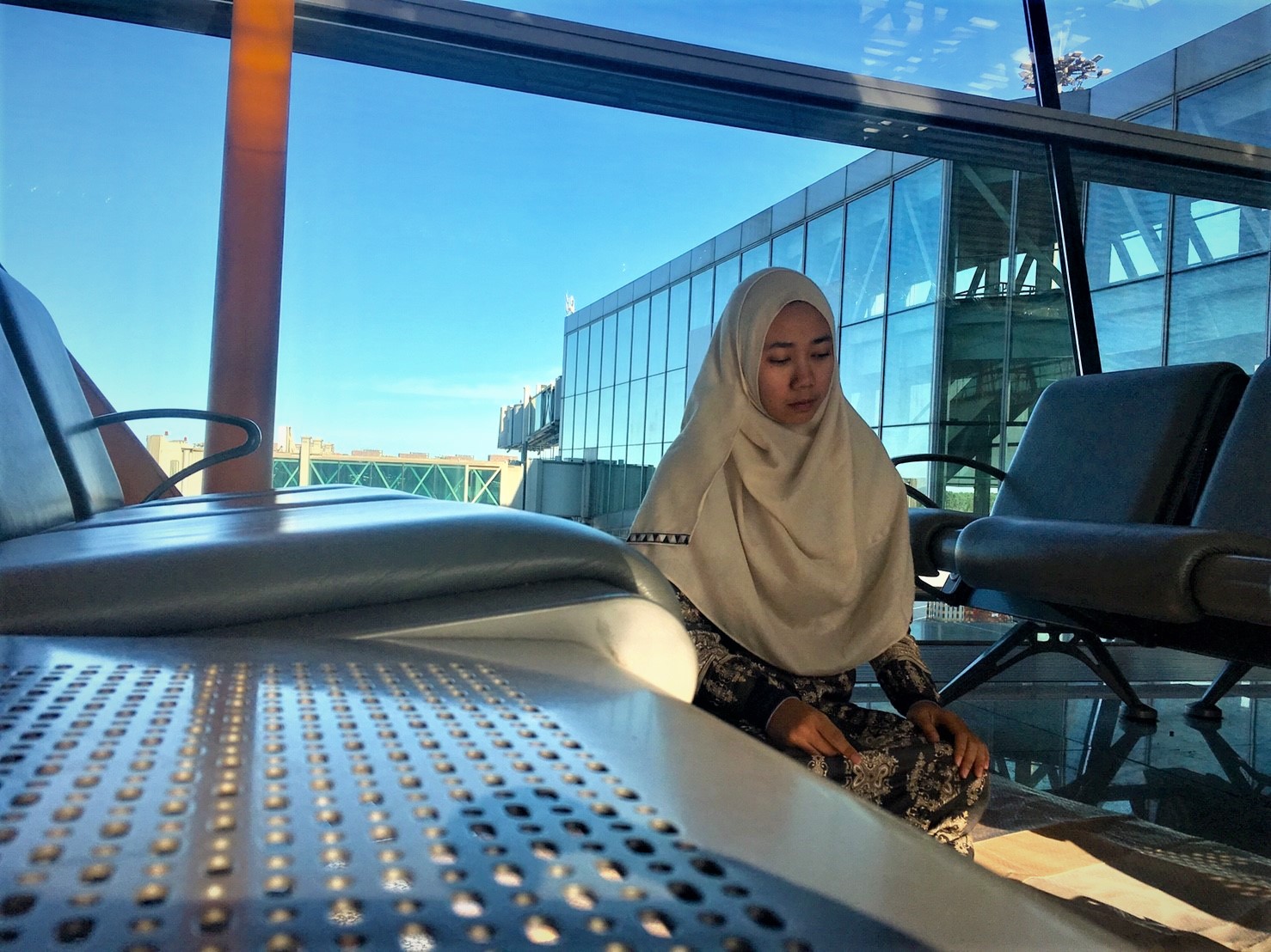 Malam itu, kita belum punya tujuan harus kemana dan karena udah tengah malam, akhirnya kita memutuskan untuk menunggu pagi di bandara sambil nyari penginapan selama disana. Malam itu, kita berkenalan dengan seorang cleaning service bandara, namanya Eddie. He was so friendly man! Malam itu kita sharing banyak sama doi soal kultur US terutama New York, sekaligus latihan listening dan speaking, berhubung Eddie speak so damn fast dan kumur-kumur plus swaggy gitu haha, jadi effort buat ngomong sama orang asing masih kerasa banget. Dan akhirnya Eddie pamit, karena udah harus mulai kerja. Hingga subuh tiba, kita belum nemu penginapan dengan harga yang cocok di kantong. Status sementara, masih belum jelas wk. Kita memutuskan untuk shalat subuh saja, dan ketika aku dan rombongan sudah bersiap ingin shalat di pojokan bandara, tiba-tiba seorang bapak-bapak berwajah timur tengah sambil bersiwak, menyapa kami dan bertanya bahwa kami ingin sholat, lalu beliau mengarahkan kita kalo di JFK ada Mushala, dan kita caw kesana deh untuk shalat subuh. Setibanya di mushala, for the first time melihat buk-ibuk dan bapak-bapak bulek para (calon) penumpang lain sedang shalat. Dan rasanya, terharu parah! Semenjak transit di China, baru ini kita bertemu lagi dengan muslim yang lain dan sama-sama nyari tempat proper untuk ibadah.